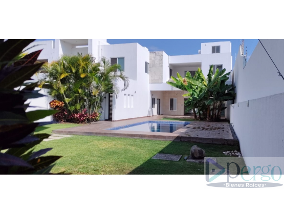 CUENTA CON DOS NIVELES, GRAN JARDÍN, ALBERCA DE EXCELENTE TAMAÑO Y PALAPA IDEAL PARA REALIZAR ASADOS O REUNIONES AL AIRE LIBRE. LA COCINA INTEGRAL ESTÁ TOTALMENTE EQUIPADA Y CONECTA CON UN ÁREA DE LAVANDERÍA FUNCIONAL Y CÓMODA.
